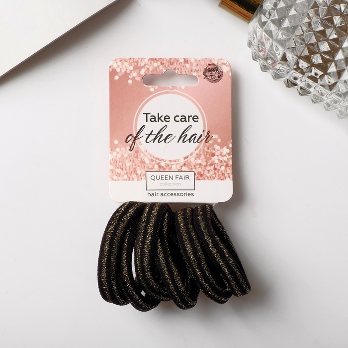Резинка для волос "Спорт элит" (набор 6 шт) полоса, 4 см, золотисто-чёрный
