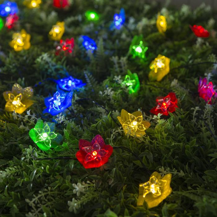 Гирлянда «Нить» 4.5 м с насадками «Цветы», IP44, тёмная нить, 30 LED, свечение мульти, 2 режима, солнечная батарея