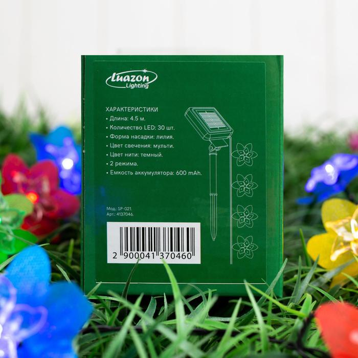 Гирлянда «Нить» 4.5 м с насадками «Лилии», тёмная нить, 30 LED, свечение белое, 2 режима, солнечная батарея