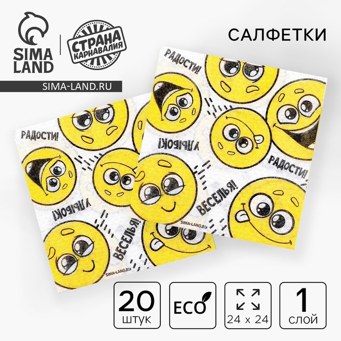 Салфетки бумажные однослойные «Смайлы. Пожелания», 24 × 24 см, в наборе 20 шт.