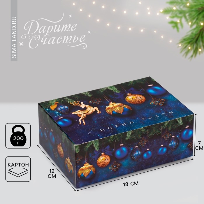 Подарочная коробка складная, новогодняя«Новогодние шары», 18 х 12 х 7 см, Новый год