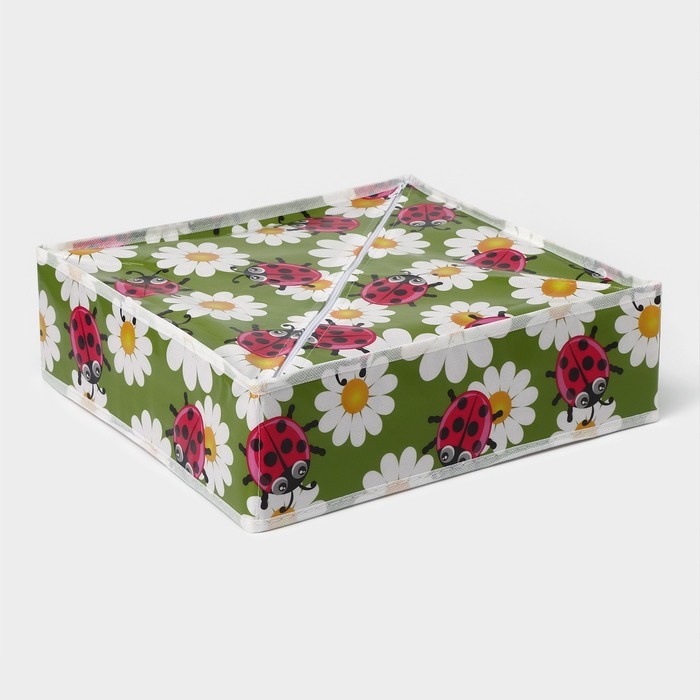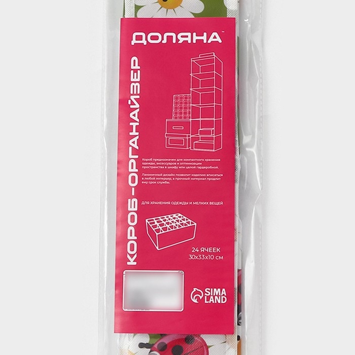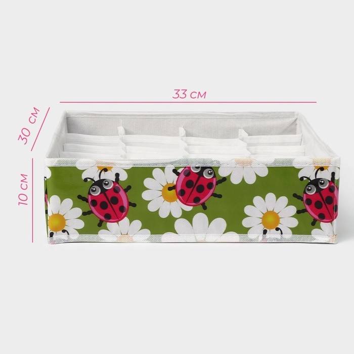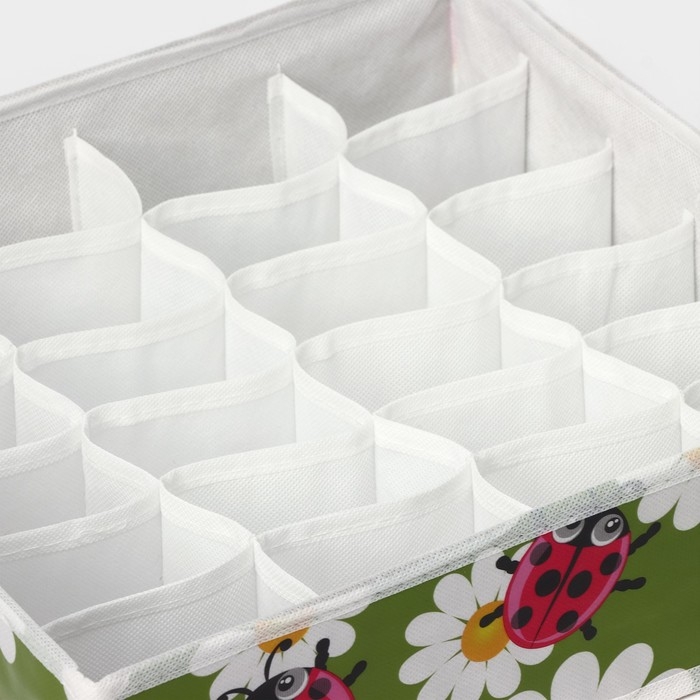 Органайзер для хранения белья Доляна «Божьи коровки», 24 ячейки, 30×33×10 см, цвет зелёный
