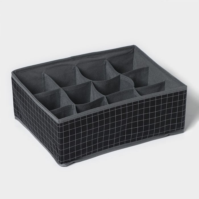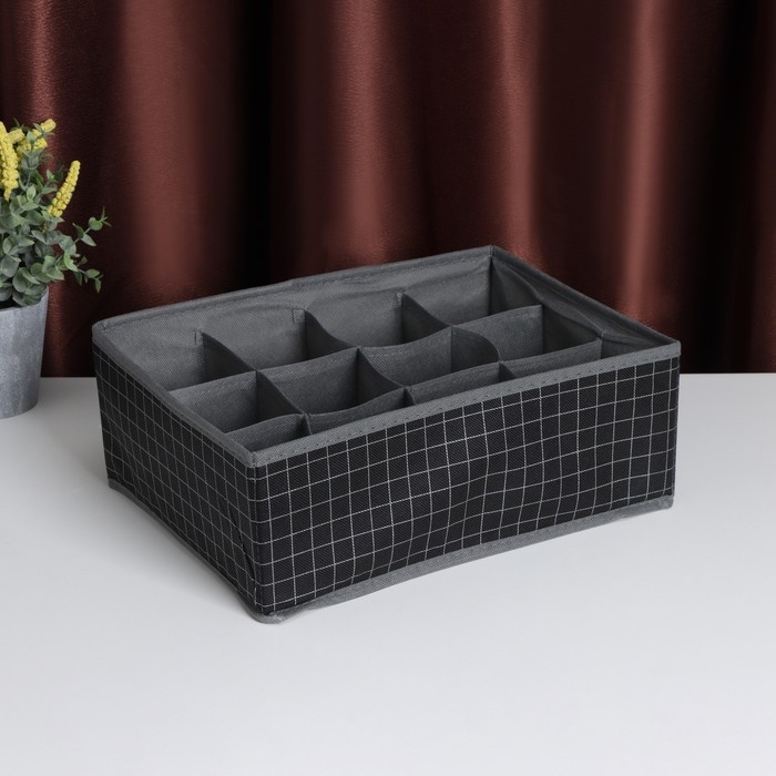 Органайзер для хранения белья Доляна «Кло», 12 ячеек, 32×24×12 см, цвет чёрный