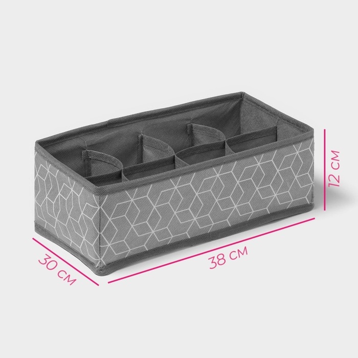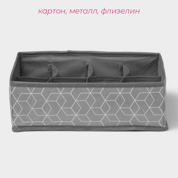 Органайзер для хранения белья Доляна «Фора», 8 ячеек, 28×14×10 см, цвет серый