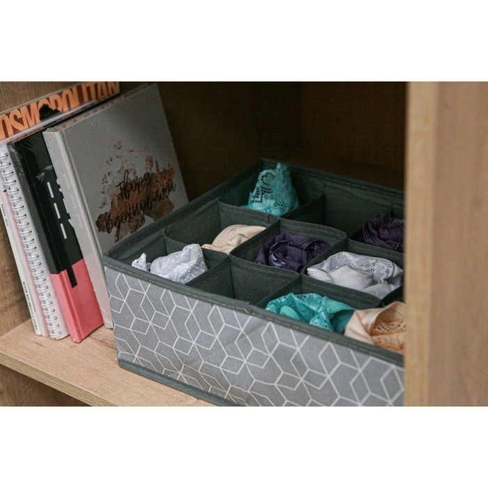 Органайзер для хранения белья Доляна «Смарт», 8 ячеек, 28,5×13,5×10 см, цвет серый