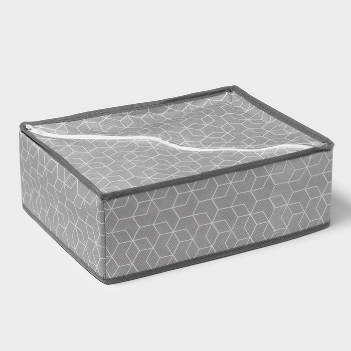 Органайзер для хранения белья Доляна «Тео», 12 ячеек, с прозрачной крышкой, 32×23×12 см, цвет серый