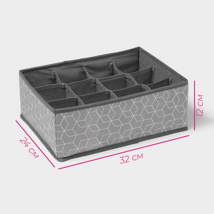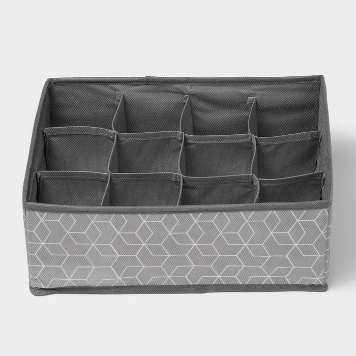 Органайзер для хранения белья Доляна «Фора», 12 ячеек, 32×24×12 см, цвет серый