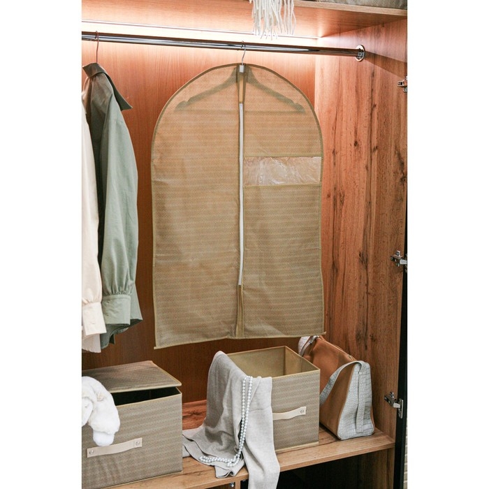 Чехол для одежды Доляна Points, ПВХ окно, 60×120 см, цвет бежевый