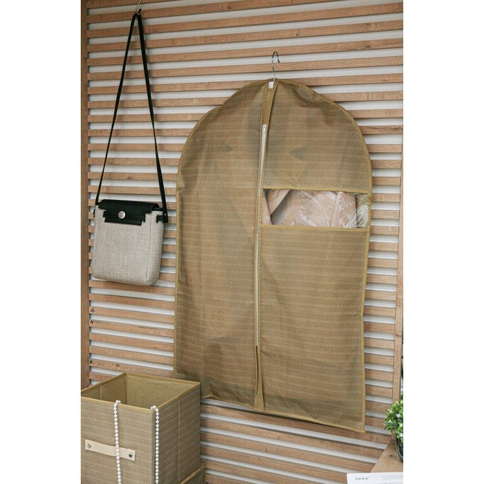 Чехол для одежды Доляна «Гусиная лапка», ПВХ окно, 90×60 см, цвет бежевый