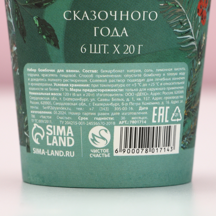 Подарочный набор косметики новогодний «Верь в чудеса!», бомбочки для ванны, 6 х 20 г, аромат яблочного фреша, Новый Год