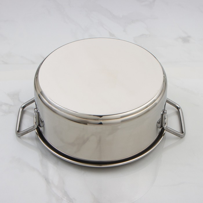 Кастрюля «Общепит», 8 л, d=30 см, h=12 см, металлическая крышка, с теплораспределительным слоем, индукция