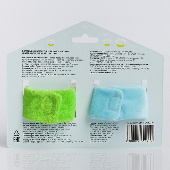 Набор браслеты - погремушки «Царевна - лягушка», 2 шт, Крошка Я