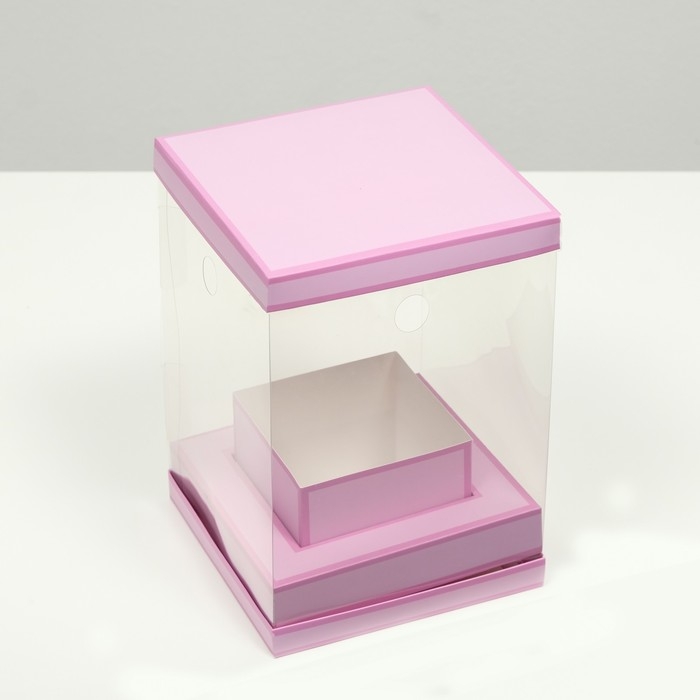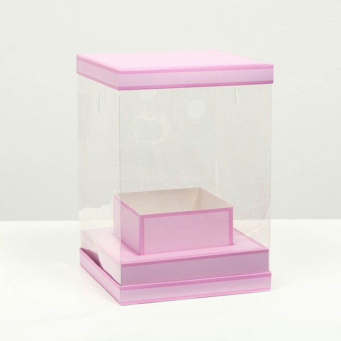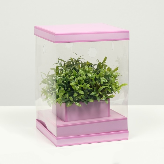Коробка для цветов с вазой и PVC окнами складная, сиреневый, 16 х 23 х 16 см
