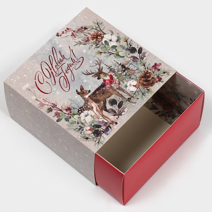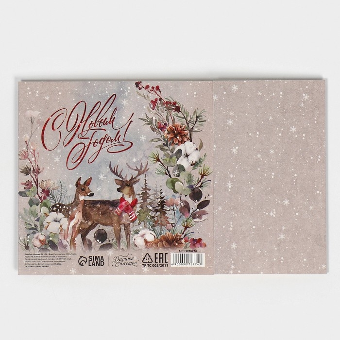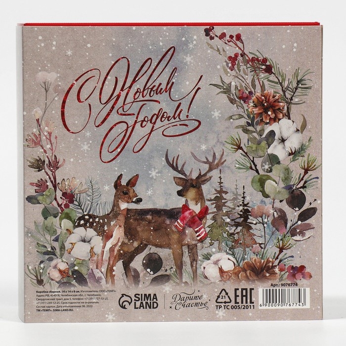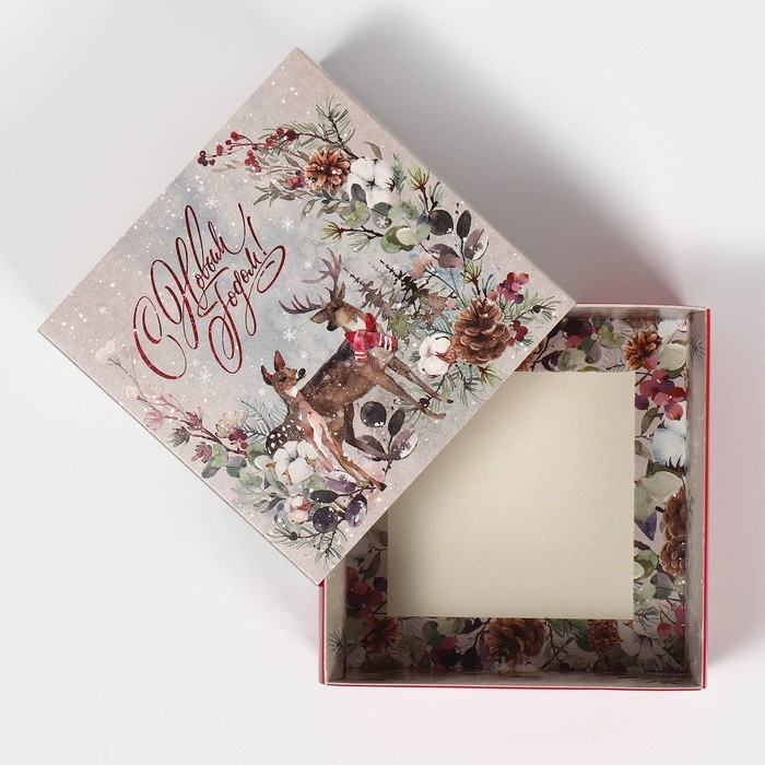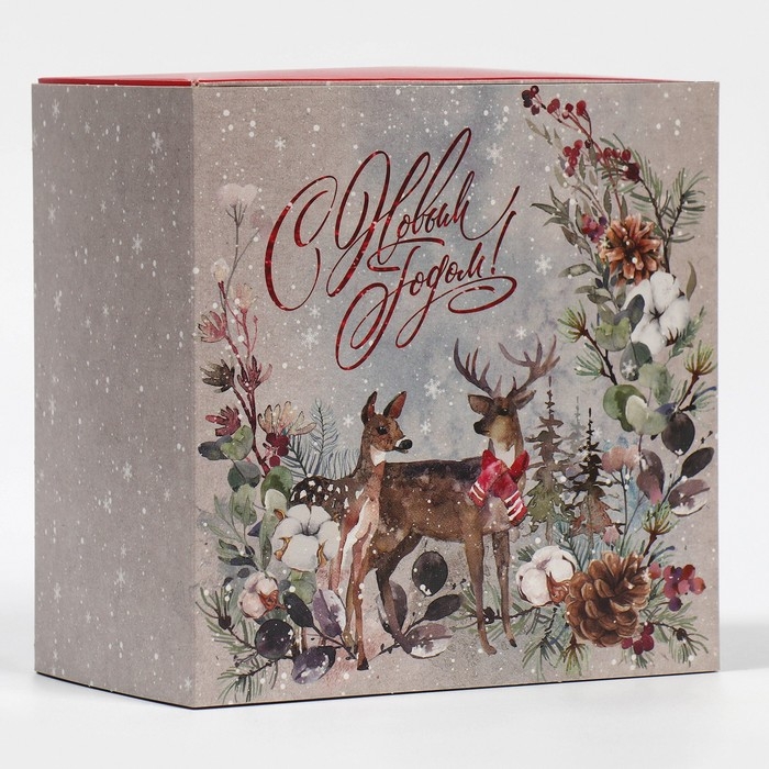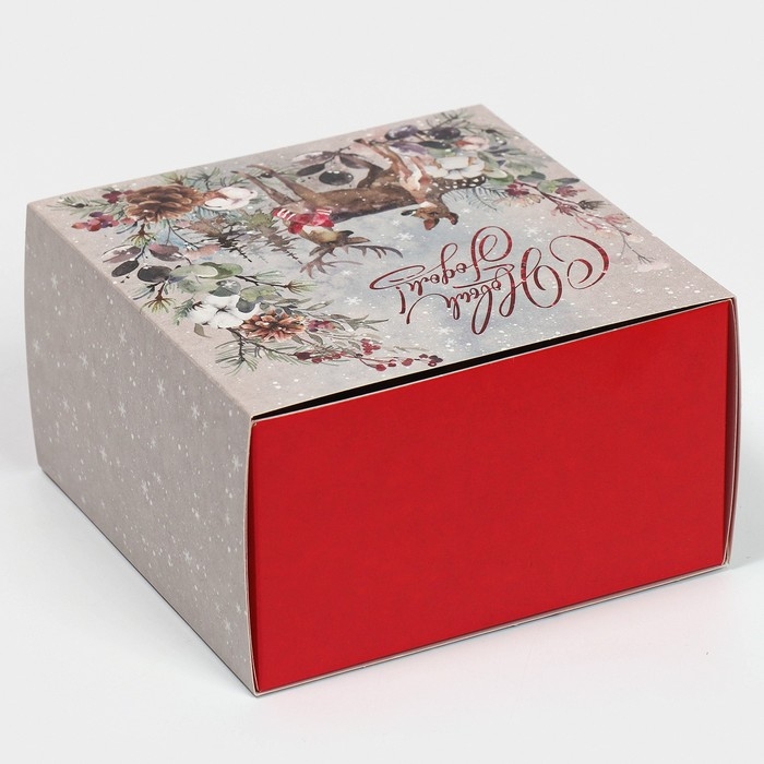 Коробка подарочная новогодняя складная «Новогодняя акварель», 14 х 14 х 8 см, Новый год
