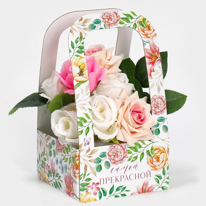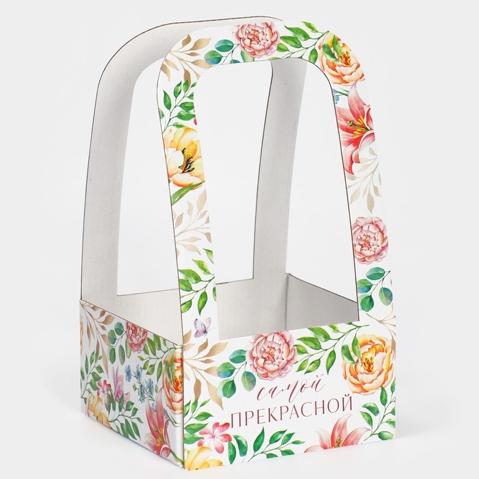 Коробка-переноска для цветов «Самой прекрасной», 12 × 12 × 22 см
