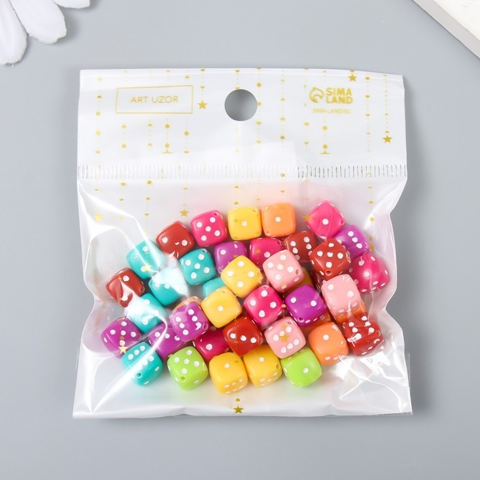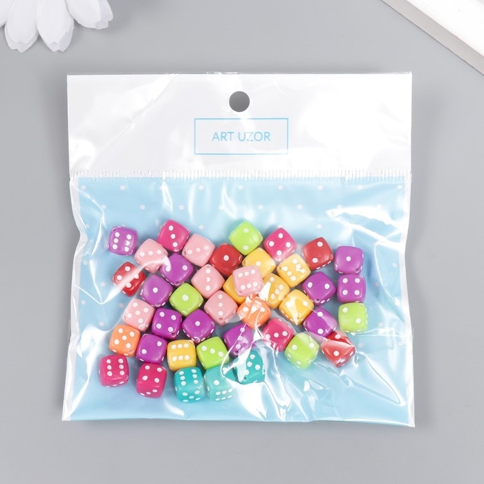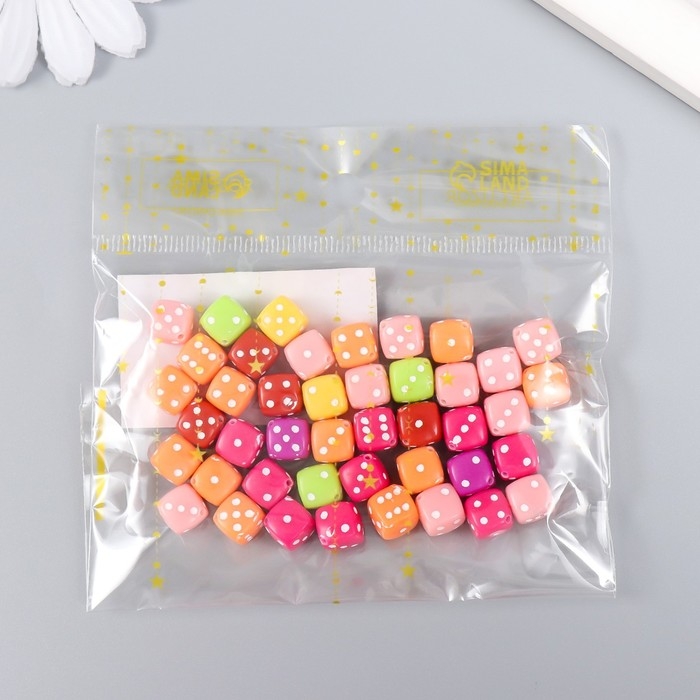 Бусины для творчества пластик "Игральный кубик" цветные набор 20 гр 0,8х0,8х0,8 см