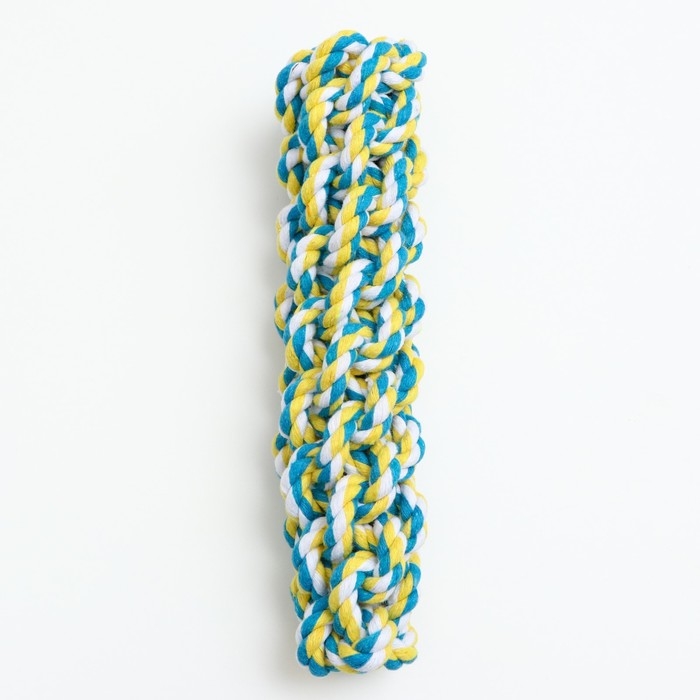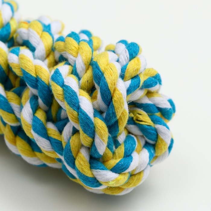 Игрушка канатная плетеная, до 100 г, до 20 см, жёлтая/голубая/белая