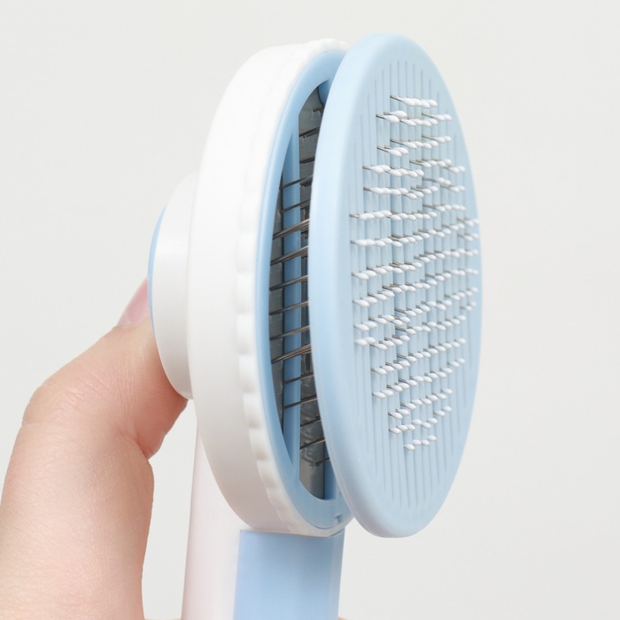 Пуходёрка пластиковая с функцией самоочистки, 7,7 х 19,1 см, голубая