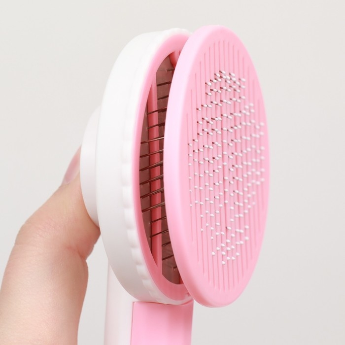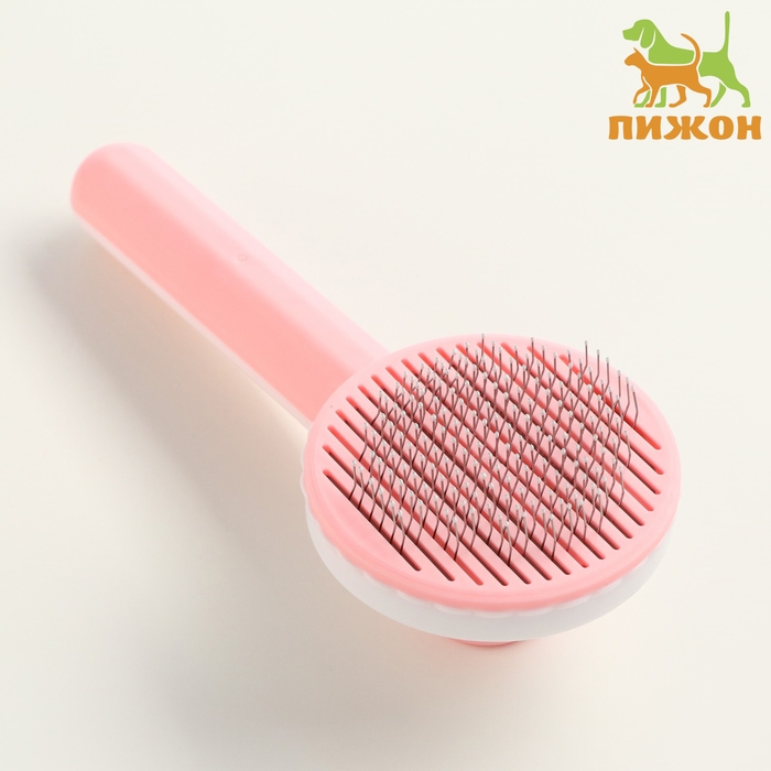 Пуходёрка пластиковая с функцией самоочистки, 7,7 х 19,1 см, розовая