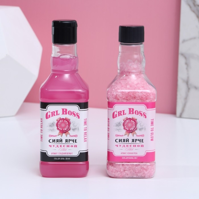 Подарочный набор косметики GRL BOSS, гель для душа во флаконе виски 250 мл и соль для ванны во флаконе виски 300 г, Новый Год