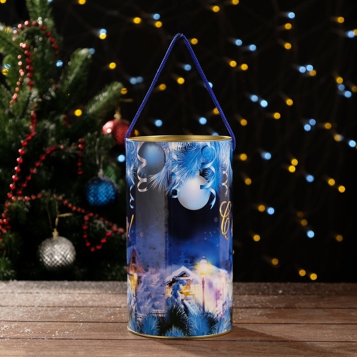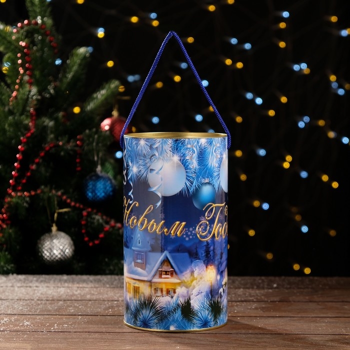 Новый год. Подарочная коробка, тубус «Рождественская деревня» 120 х 220 мм (200 мм внутр. высота).