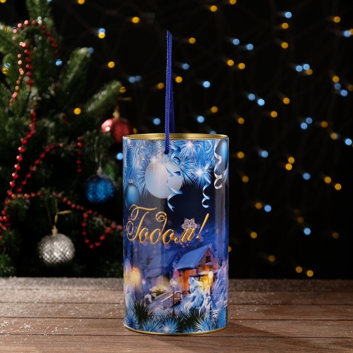 Подарочная туба выполнена из плотного картона и металла. Изделие оформлено красочным изображением. Туба оснащена крышкой. В комплект входит подвесное декоративное украшение.