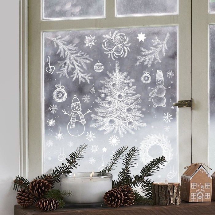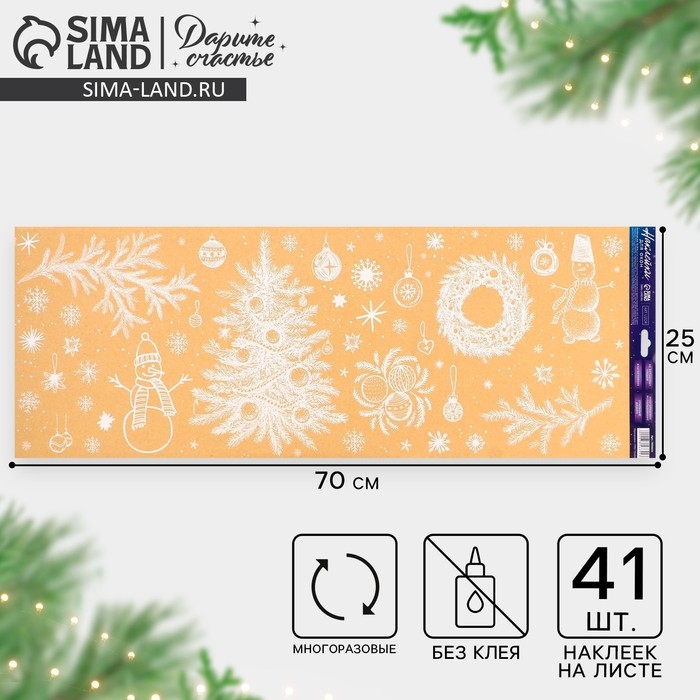Наклейки новогодние на окна, виниловые «Сказка рядом», многоразовые, 70 х 25 см, Новый год