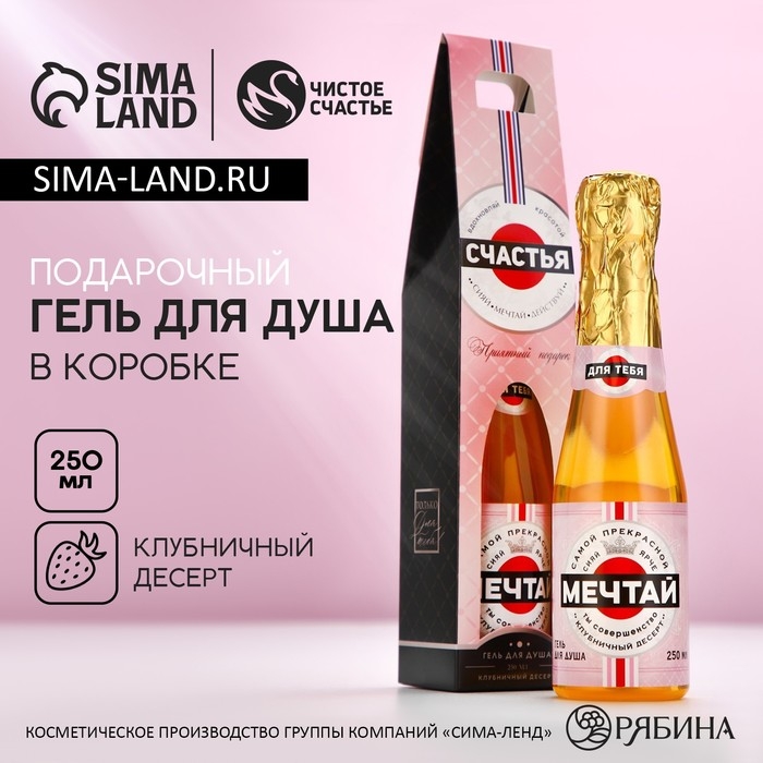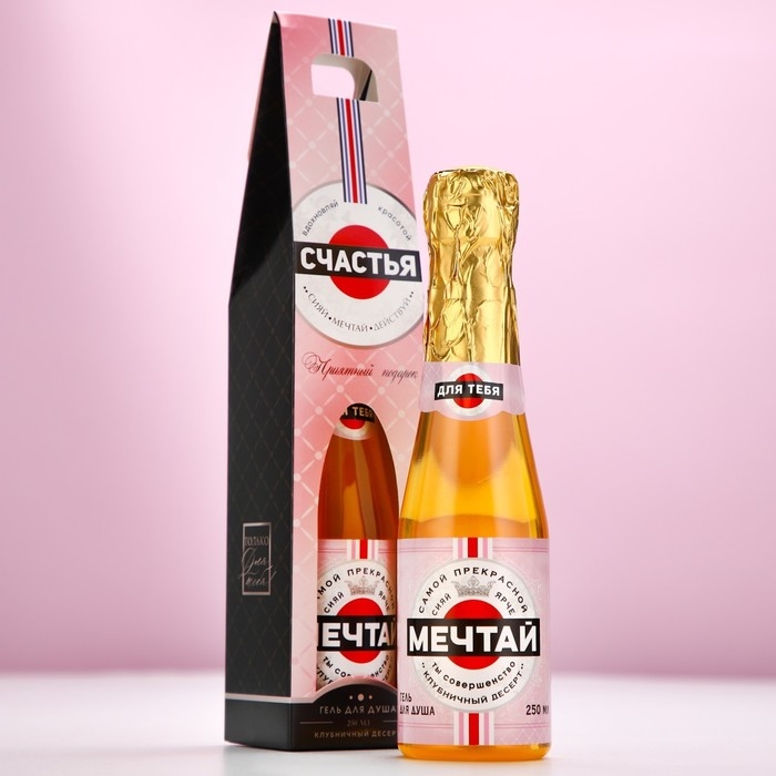 Гель для душа во флаконе шампанское «Счастья», 250 мл, аромат клубничного десерта, Новый Год