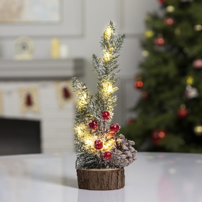 Светодиодная фигура «Ёлка с шишкой», 8.2 × 29 × 8.2 см, пластик, батарейки CR2032х2 (в комплекте), свечение тёплое белое