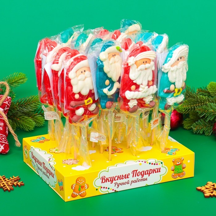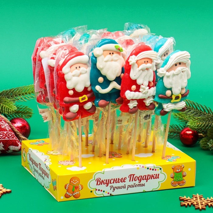 Леденец в новогодней тематике - это отличный, оригинальный подарок. Леденцы на палочке произведут WOW эффект на гостей, украсят любой десерт или могут стать оригинальным подарком ребёнку и взрослому. Подойдёт в качестве украшения - леденцы на торт и для украшения коктейлей. Сладость на палочке, отличное угощение для больших и взрослых любителей сладостей. Упакован в индивидуальную пузырчатую пленку. Длина палочки позволяет их использовать как декор в качестве украшения торта.