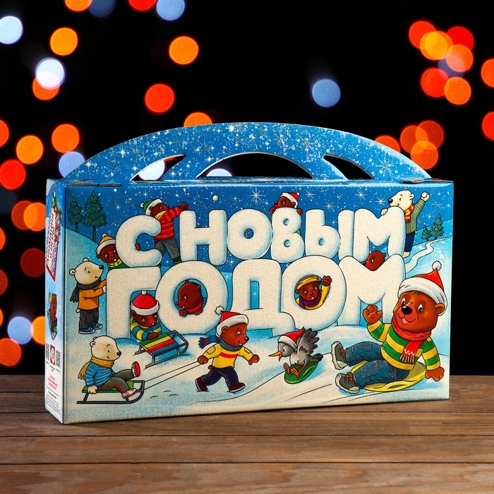 Новый год. Подарочная коробка "Мишки", 39 х 6,5 х 21,5 см.