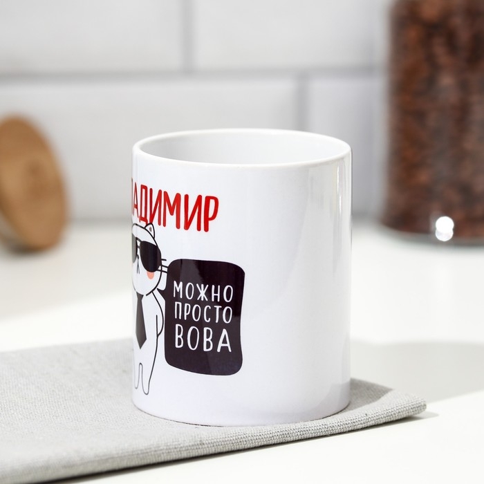 Кружка сублимация "Владимир" кот в галстуке, 320 мл, с нанесением