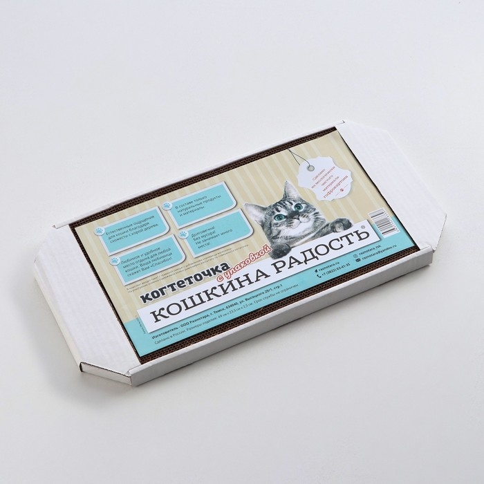 Он выполнен из гофрокартона, который изготовлен из природного материала - древесины и по своим свойствам очень на нее похож, чем и привлекают наших питомцев. Он достаточно плотен, чтобы выдержат острые коготки, и оптимально податлив, чтобы привлекать кошку.