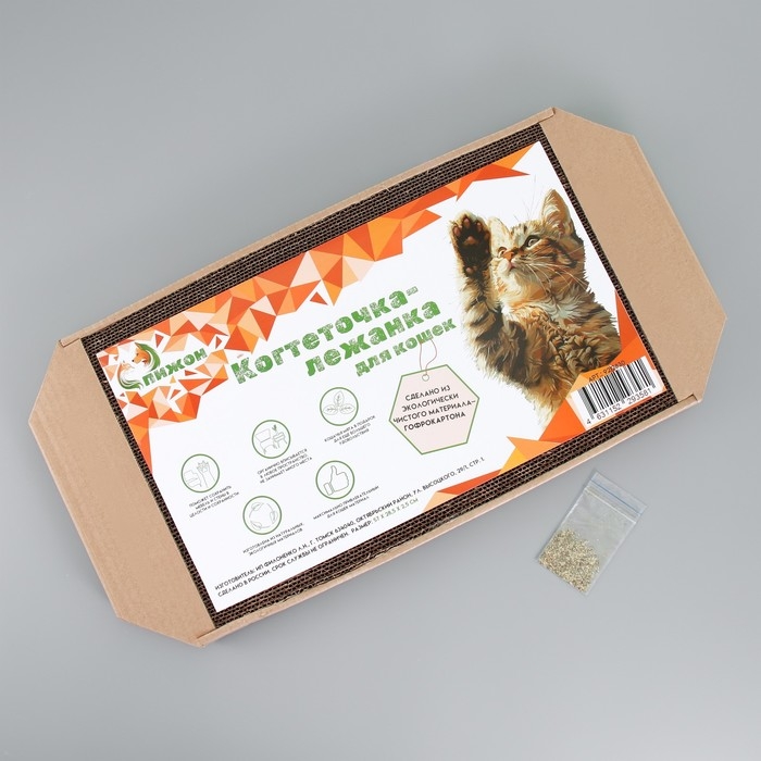Он выполнен из гофрокартона, который изготовлен из природного материала - древесины и по своим свойствам очень на нее похож, чем и привлекают наших питомцев. Он достаточно плотен, чтобы выдержат острые коготки, и оптимально податлив, чтобы привлекать кошку.