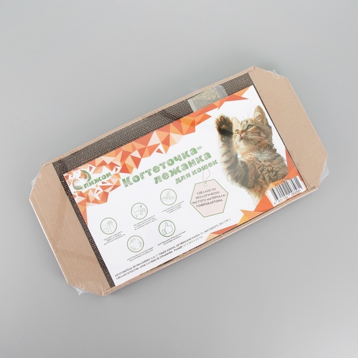 Когтеточка-лежанка для кошек "Пижон" из гофрокартона КРАФТ, 57 х 28,5 х 2,5 см