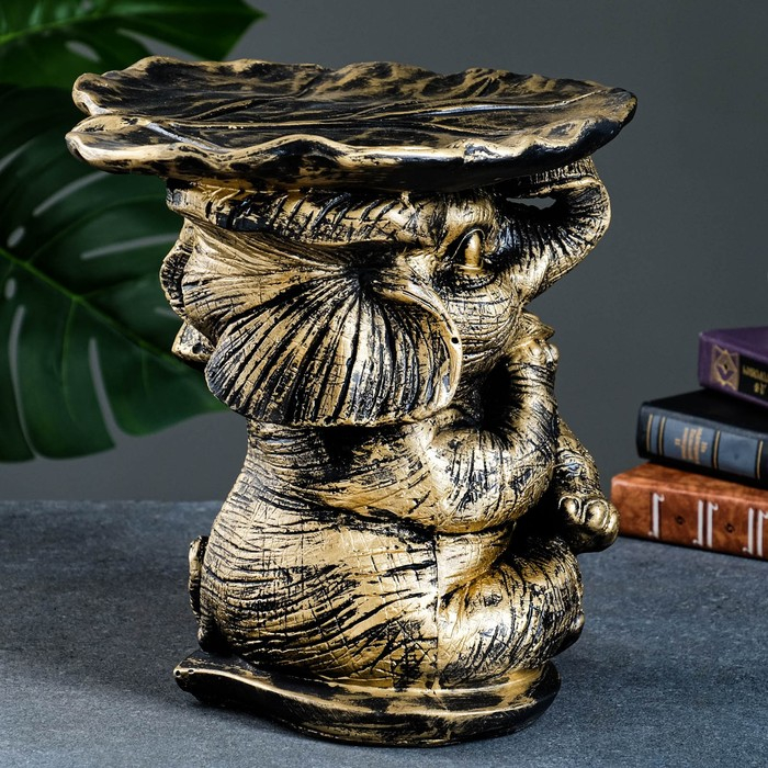 Фигура - подставка "Слон с листком" бронза/золото, 30х30х30см