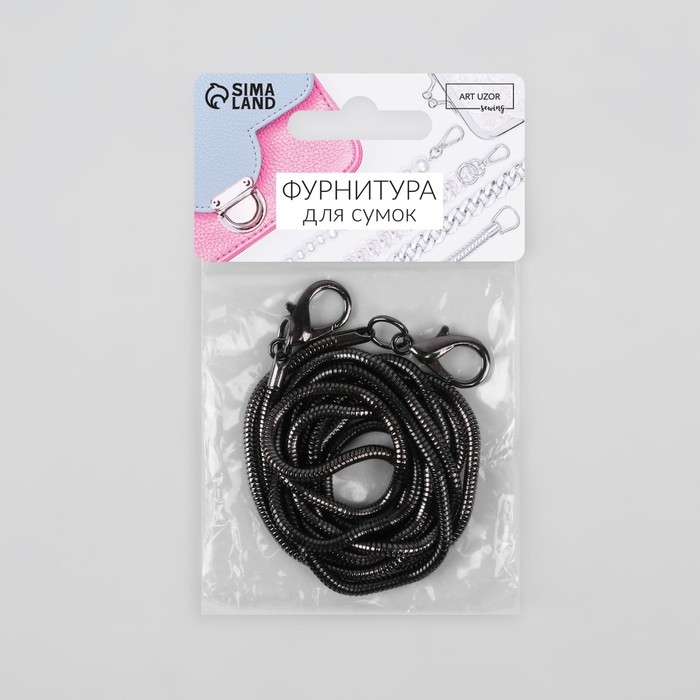 Цепочка-шнурок для сумки, с карабинами, железная, d = 3,2 мм, 120 см, цвет чёрный никель