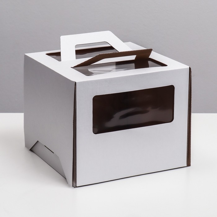 Коробка под торт, белая, с окном, 18 х 18 х 22 см