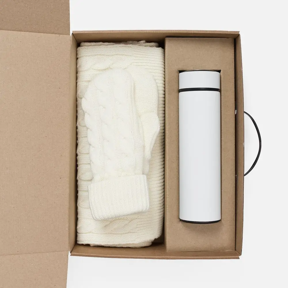 шарф, варежки - акрил 100%; термос - нержавеющая сталь, 304; покрытие софт-тач; коробка - микрогофрокартон