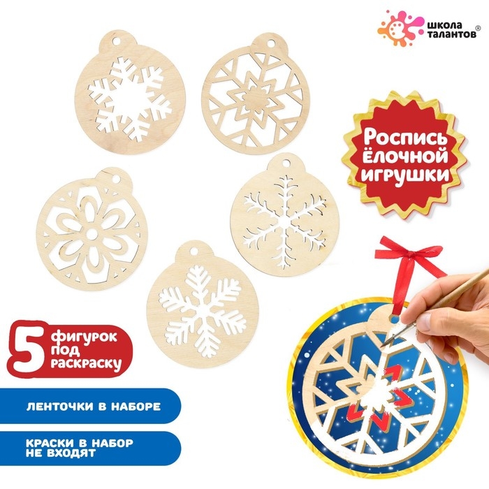 С набором для росписи по дереву у вас получится смастерить 5 новогодних подвесок и украсить ими праздничную ёлочку или интерьер.