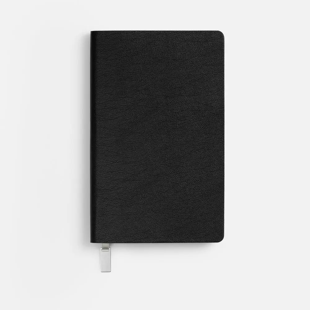 Ежедневник с гибкой обложкой, выполнен из материала Petrus, черный АА, дополнен серым ляссе с металлическим шильдиком.