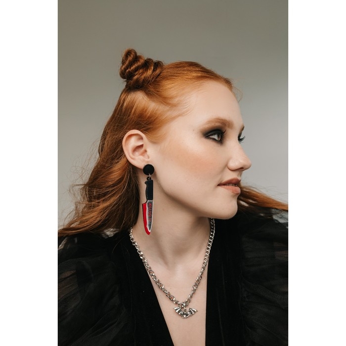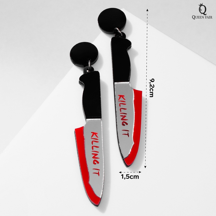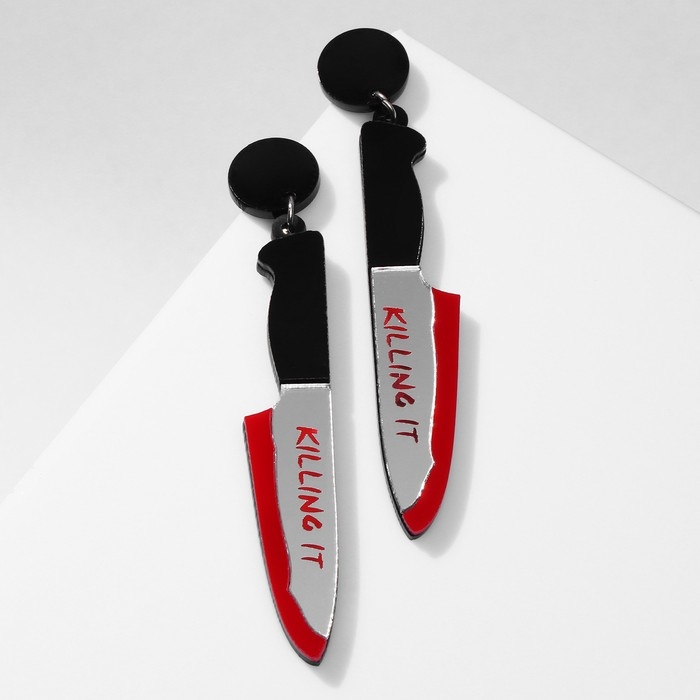 Серьги акрил «Ножи» окровавленные, цвет красно-белый в чёрном металле