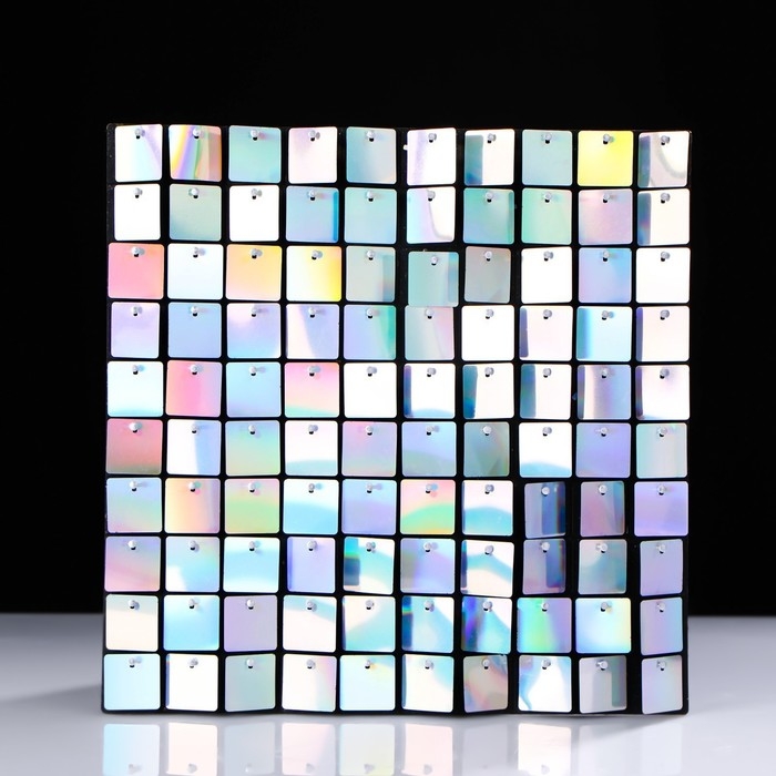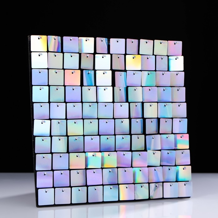 Панель с пайетками для фотозоны 30*30см, серебристая с эффектом голографии