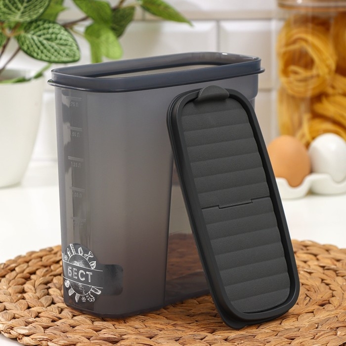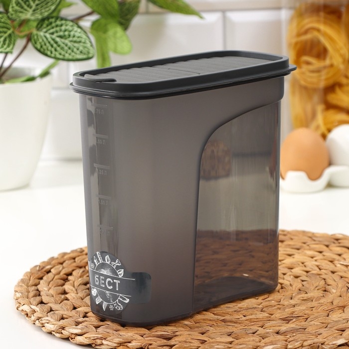 Ёмкость для сыпучих продуктов «Бест», 2 л, 9,5×19×19 см, цвет прозрачный, крышка серая