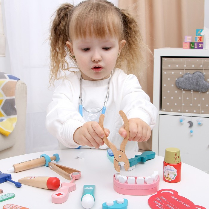 Детский набор доктора создан для сюжетной игры «Стоматолог»». Малыш примерит на себя роль врача и будет проводить осмотр пациентов.