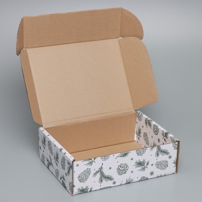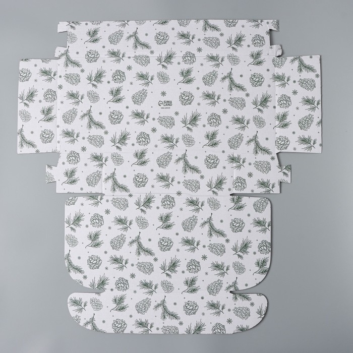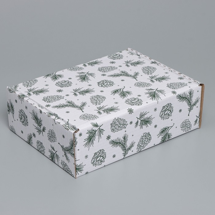 Коробка новогодняя складная «Шишки», белый, 27 х 21 х 9 см, Новый год