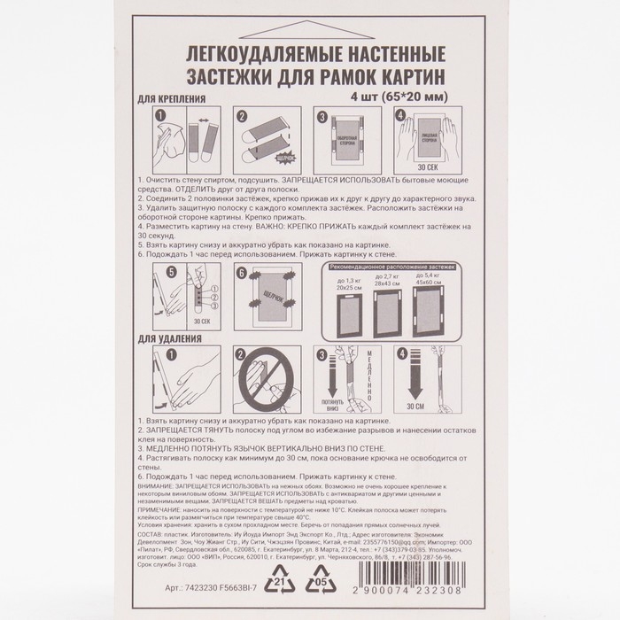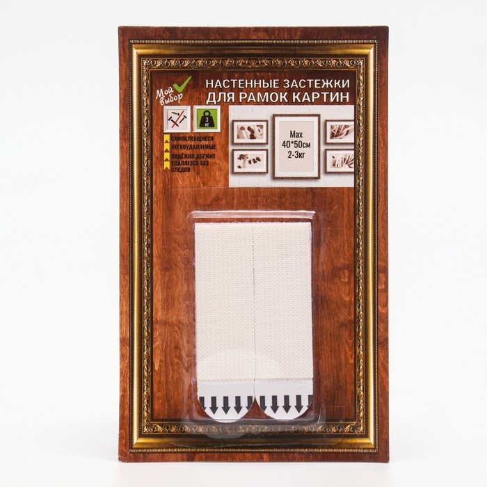 С помощью клейкие застежки Мой выбор ( липучки, крючки на стену, крепеж, полоски) можно легко и безопасно крепить разнообразные аксессуары на вертикальной поверхности. Вы не портите стены, не шумите, не сверлите, никаких лишних движений. При необходимости можно удалить, потянув за клейкую полоску. Благодаря настенным застежкам можно эстетично крепить к стене все что угодно соблюдая весовую нагрузку - роутер, часы, полки, рамки, картины. Одна застежка фиксируется на стене, а другая - на раме. Именно поэтому Вы можете вешать и снимать Ваши фотографии, предметы интерьера столько раз сколько пожелаете. Соблюдайте инструкцию по применению на оборотной стороне упаковки! Подходит для твердых, ровных поверхностей и окрашенных стен. Не подходит для бумажных или виниловых обоев, шероховатых поверхностей.