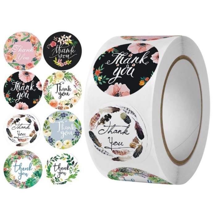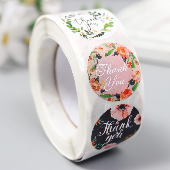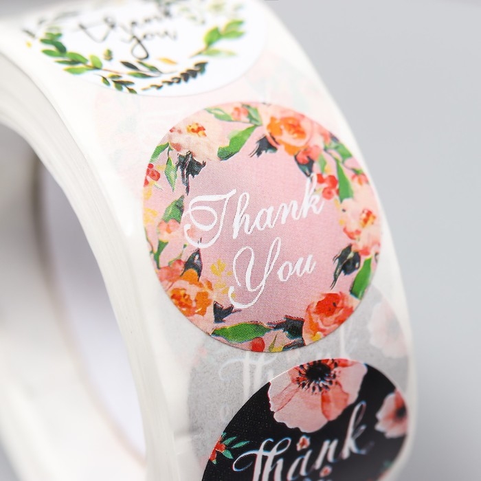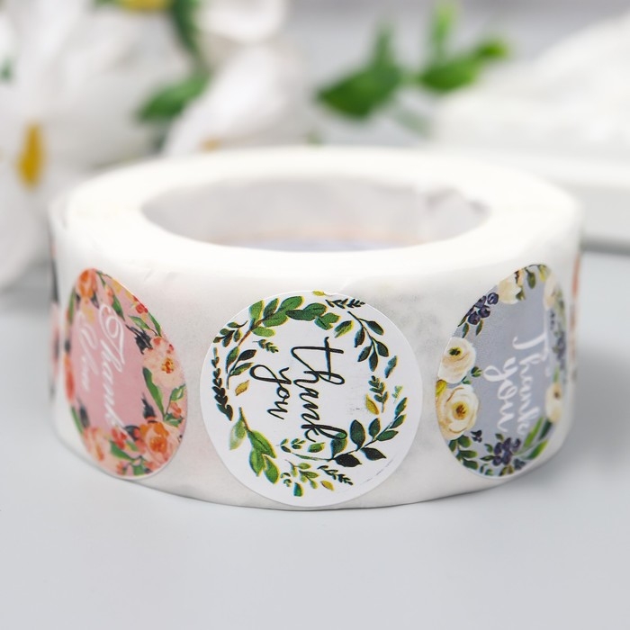 Наклейка бумага "Растительные" d=2,5 см 500 шт в рулоне 3х6,5х6,5 см