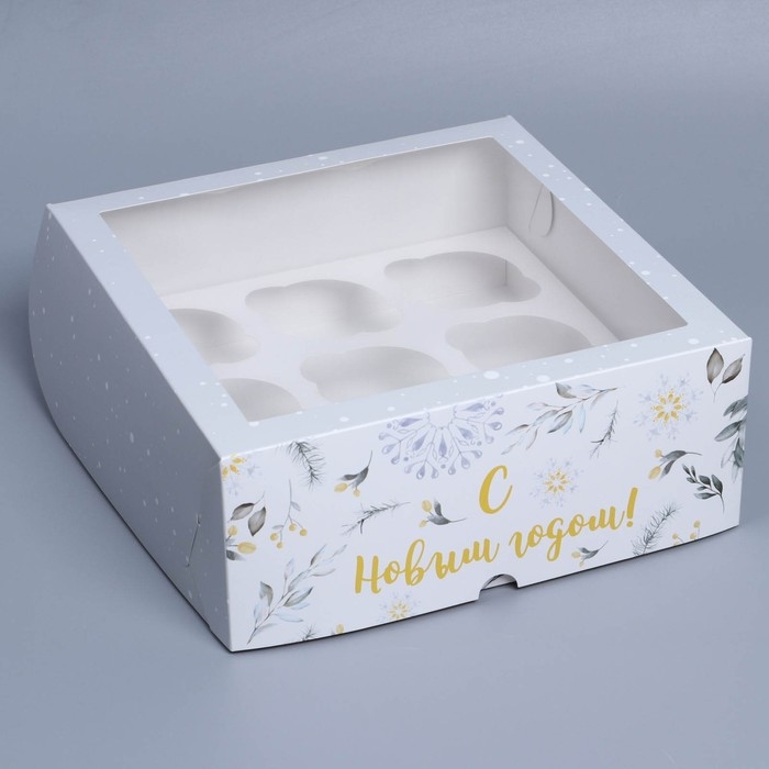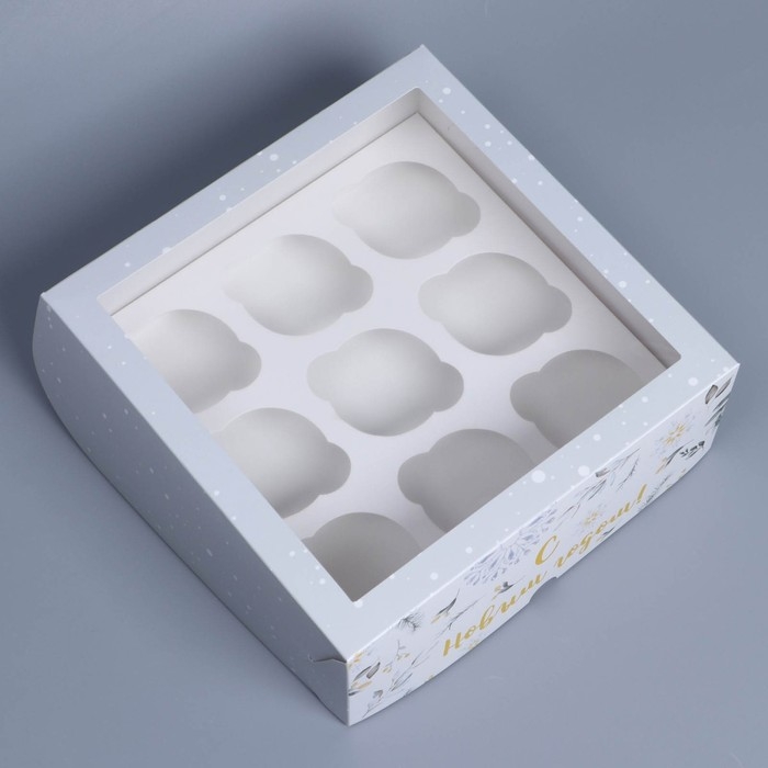 Коробка складная на 9 капкейков с окном «Паттерн светлый», 25 х 25 х 10 см, Новый год
