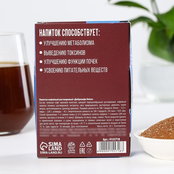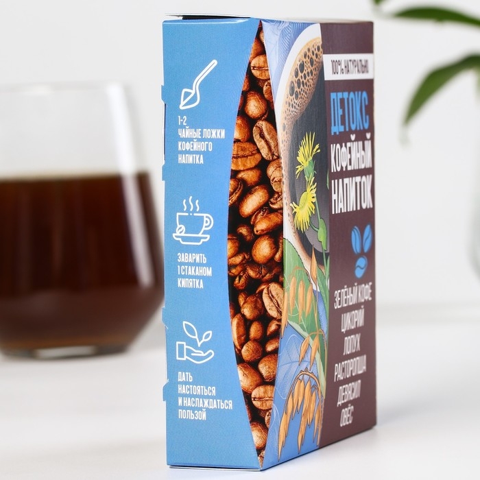 Кофейный напиток «Детокс»: зелёный кофе, цикорий, лопух, расторопша, девясил, овёс, 50 г.